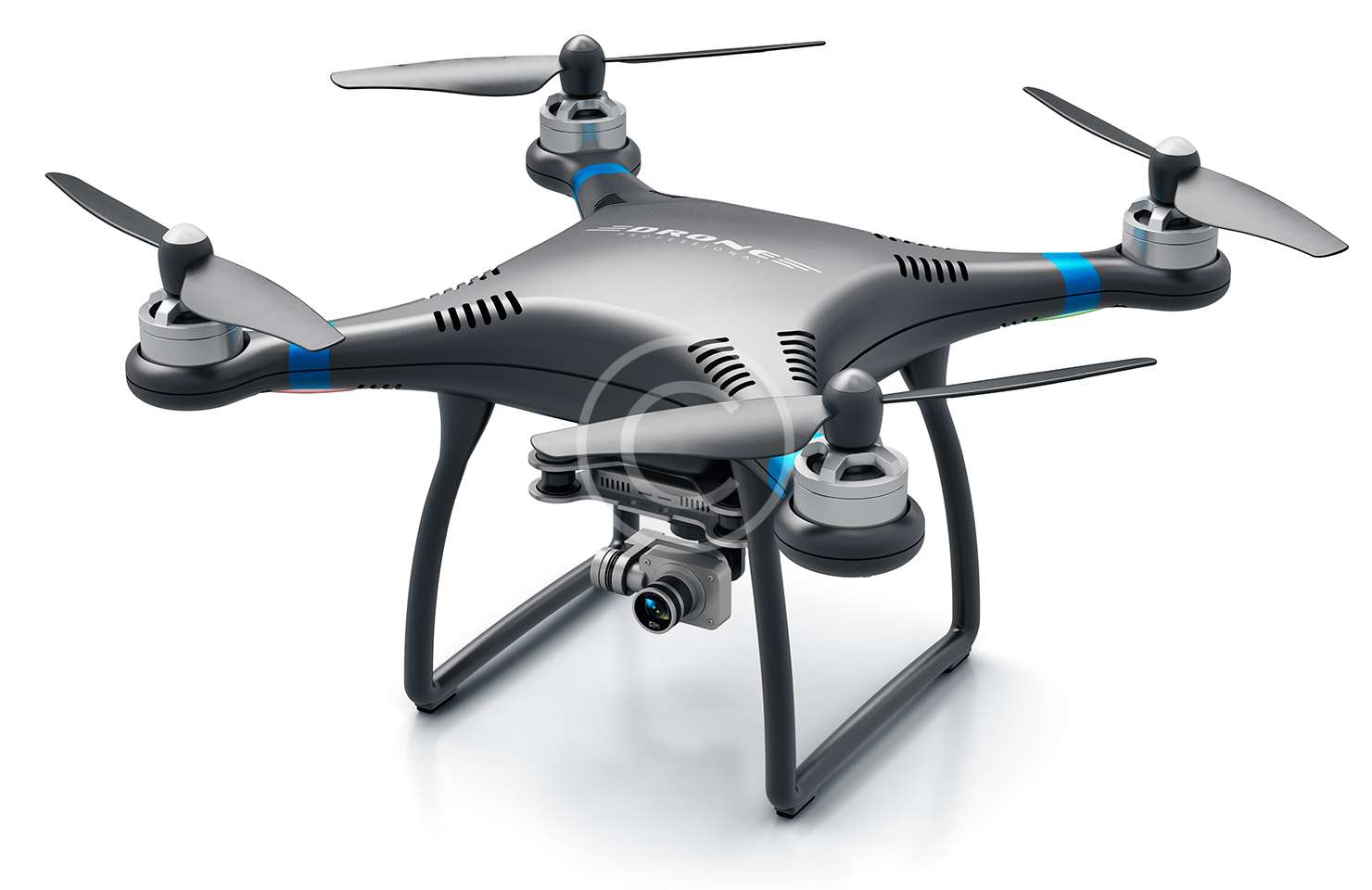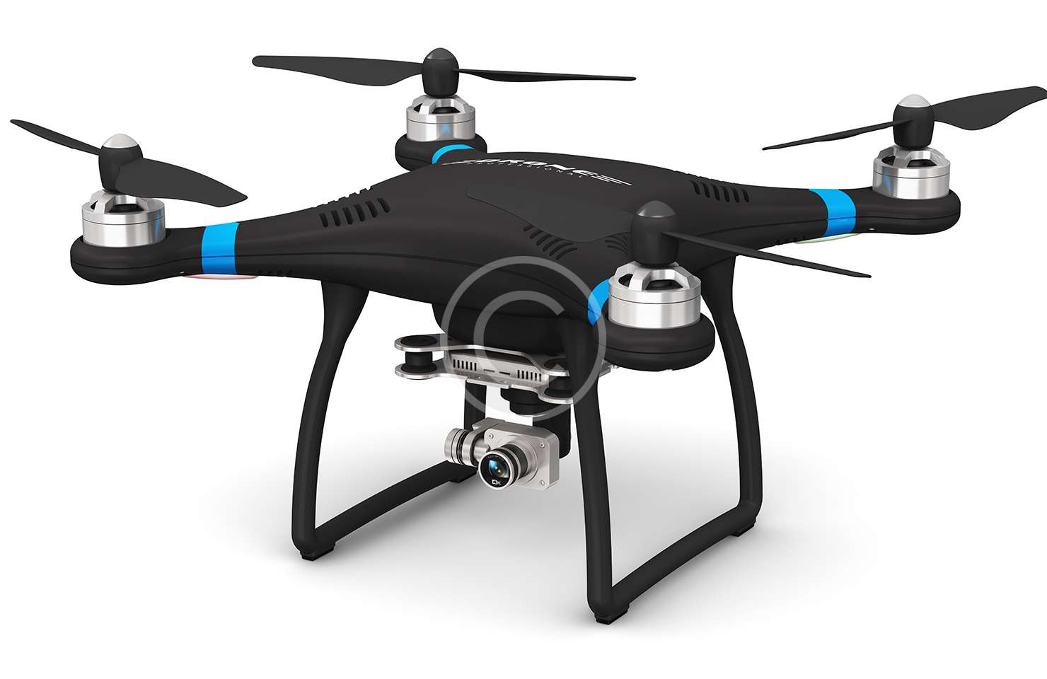 Quadcopters generally use two pairs of identical fixed pitched propellers; two clockwise and two counterclockwise. These use independent variation of the speed of each rotor to achieve control. By changing the speed of each rotor it is possible to specifically generate a desired total thrust to locate the center.